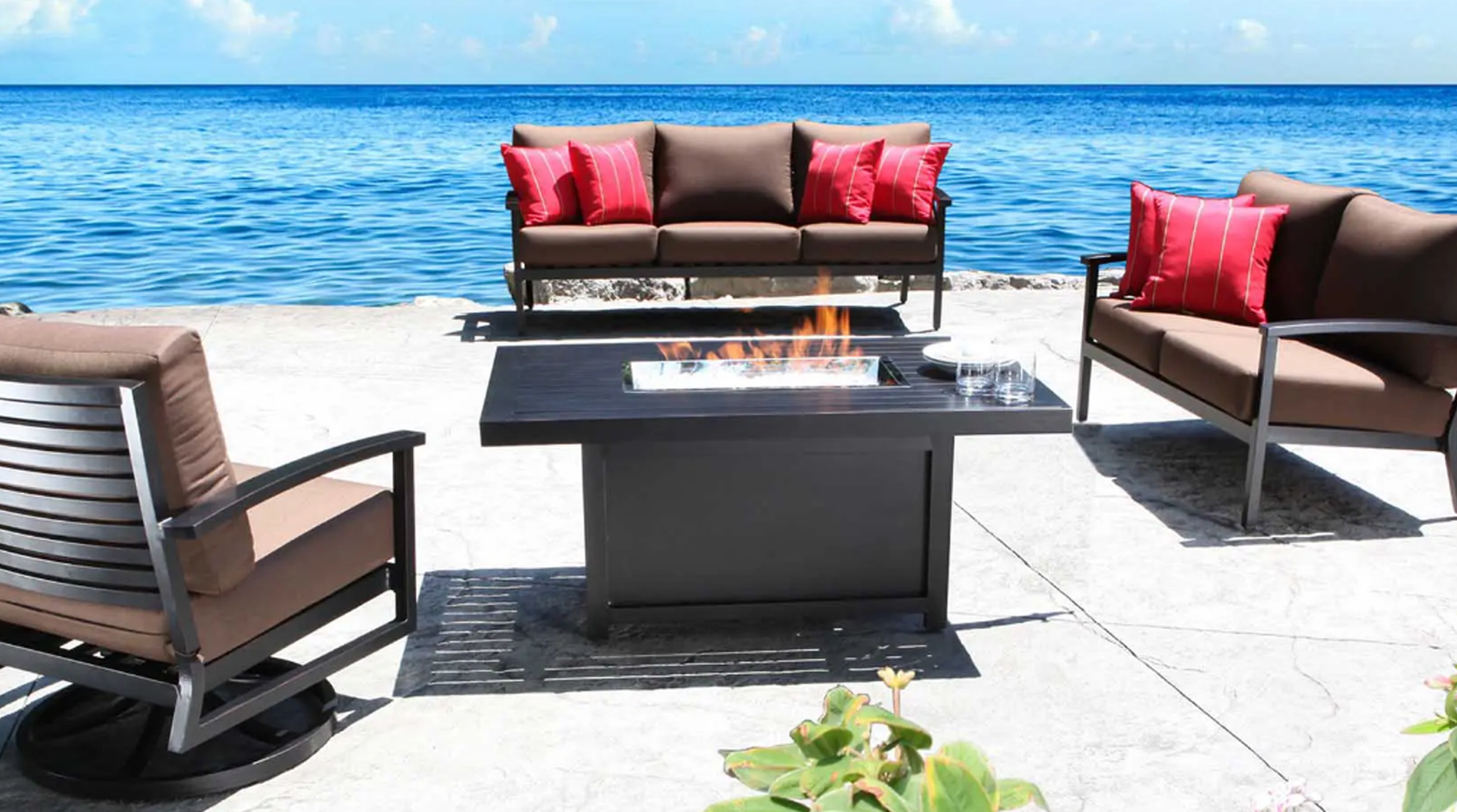 Monaco firepits are available in propane (20lb vertical tank) & natural gas