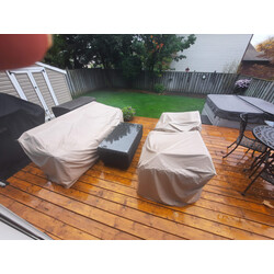 We manufacture outdoor furniture covers from Canadian made vinyl for every piece of furniture we sell. They have been known to last up to 8 years before any leakage occurs and very U.V. stabilized for pliablilty and colour fastness.